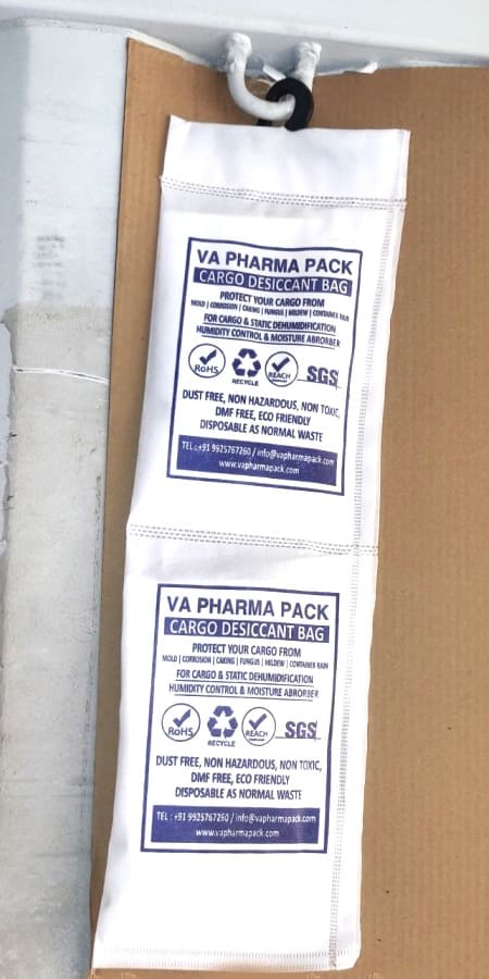 The cargo desiccant bag serves as a comprehensive solution for protecting corrugated boxes from moisture-related damage by effectively controlling humidity inside the container. Corrugated box protection from moisture is essential during long-distance shipping. Cargo desiccant bags significantly reduce the risk of warping, mold growth, and weakening of structural integrity, and surface damage during exports To safeguard corrugated boxes during transit, placing a cargo desiccant bag inside the container helps maintain a dry environment throughout the journey. Designed for ease of use, cargo desiccant bags can be hung or attached within the container for optimal moisture absorption. Each unit can absorb more than 250% of its weight in moisture and water vapor. This cost-effective moisture control solution is ideal for preserving the quality and strength of corrugated packaging during international shipping, minimizing potential losses and ensuring product integrity upon arrival.