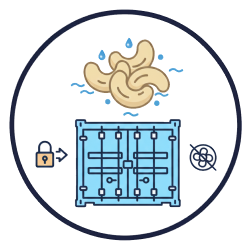 During container shipment, raw cashew nuts are particularly vulnerable to aflatoxin formation due to high humidity, elevated temperatures, and prolonged storage periods. Moisture absorption in poorly ventilated containers creates an environment conducive to fungal growth, increasing the risk of contamination.