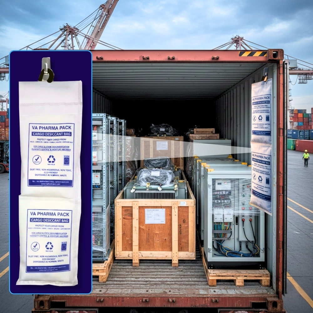 Cargo desiccant bags are essential during the export of transformers, switchgear, and other power-sector equipment. They absorb excess moisture inside shipping containers, prevent condensation, protect insulation integrity, protect switchgear from humidity during sea shipment, and reduce the risk of corrosion. As a trusted switchgear shipment desiccant manufacturer, industrial cargo desiccants help ensure that equipment arrives at the project site in a safe, dry, and installation-ready condition.